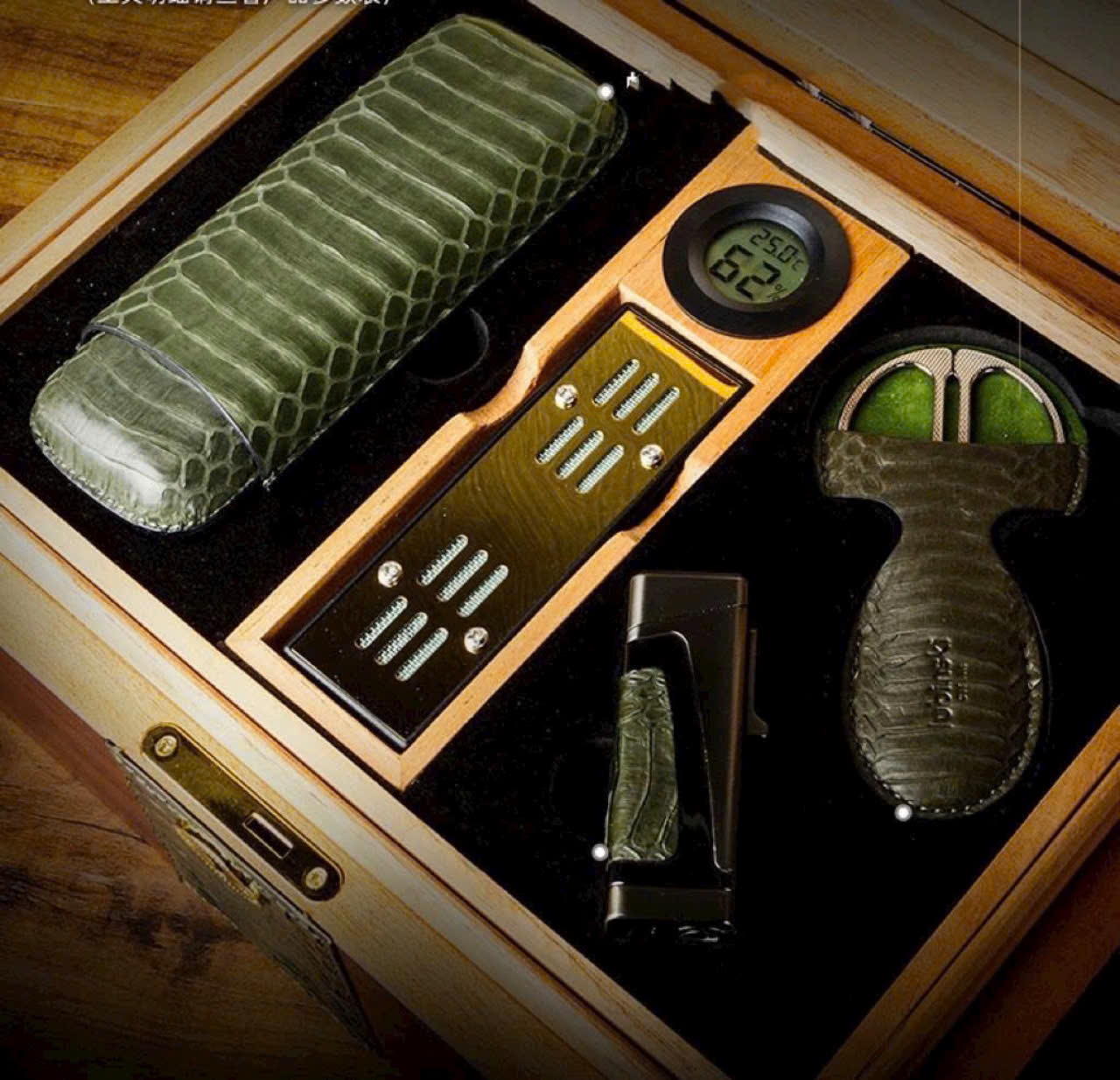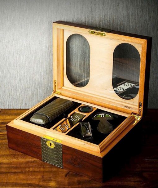 Bộ sản phẩm bao gồm: Hộp bảo quản và bộ set phụ kiện xì gà, giấy tờ chính hãng Lubinski